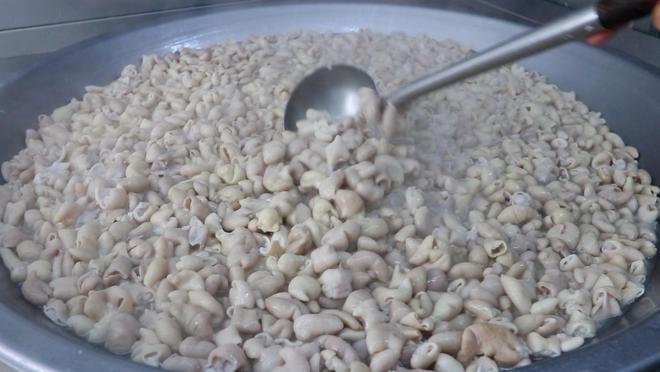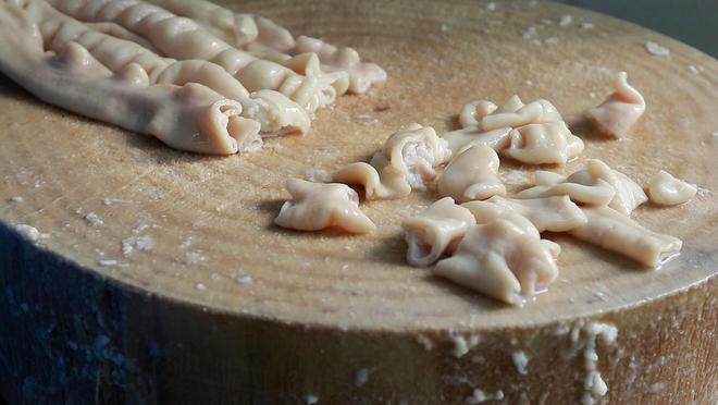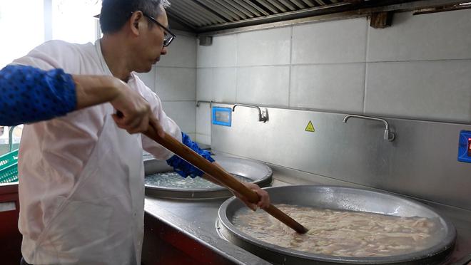 以多重工序清洗好的肥腸,臟器的味道已減掉許多,這還沒完,接下來便是焯水、切塊、用醬料燒制。日復一日,香火肥腸始終以嚴格的標準處理肥腸。
