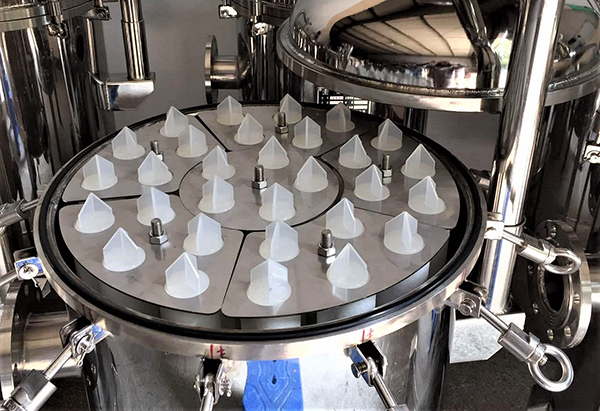 工作原理是一種壓力式過(guò)濾裝置。在密閉筒體內(nèi),是根據(jù)不同行業(yè)需求采用不同材質(zhì)濾芯作為過(guò)濾元件,垂直裝在濾板上組成,原液由進(jìn)料口流入筒體,經(jīng)過(guò)每一支濾芯由外向內(nèi)排出,微小雜質(zhì)顆粒被攔截在濾芯表面。設(shè)計(jì)結(jié)構(gòu)獨(dú)特,整個(gè)過(guò)程操作節(jié)能、密閉操作、精密澄清的固液分離設(shè)備,裝卸濾芯十分方便,濾筒清洗方便簡(jiǎn)單。